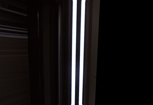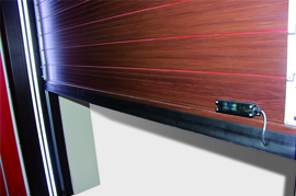 門體兩側(cè)裝有LED倒車感應(yīng)示寬燈,即使在下雨、下霧的天氣或者晚上視線不好的情況下,也能安心的將車倒進車庫內(nèi)。